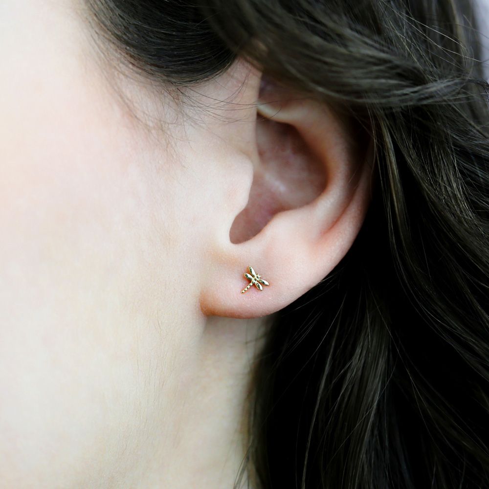 Mooie 14K geel gouden oorstekers in de vorm van een libel